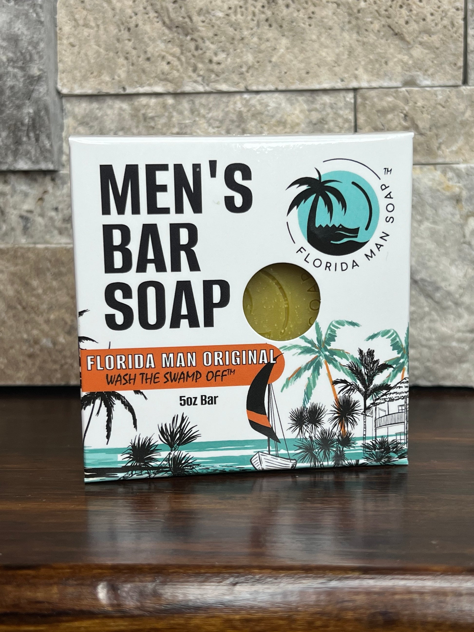 Florida Man Soap's, Florida Man Original Bar, embodies the spirit of adventure and history with a bold untamed scent of spicy bay rum.